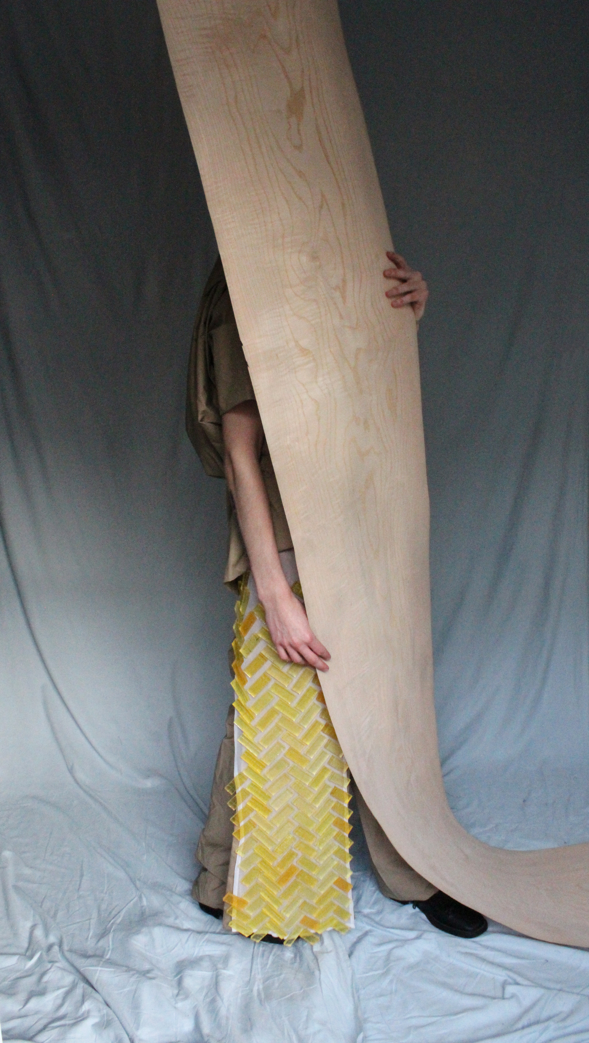 The materiality of wood speaks of the strength young men display, but in the form I am developing it in, it has a fragile fluidity. It has distinctly progressed from being chair structures to sculptures that echo at chair forms. My collection contextualises young men who are images of strength and stability, proudly showing their vulnerabilities and gentleness.